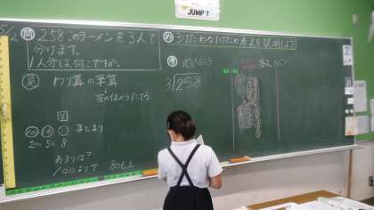 3けたわる1けたの計算のしかたについて考えています。 筆算について,説明をしています。