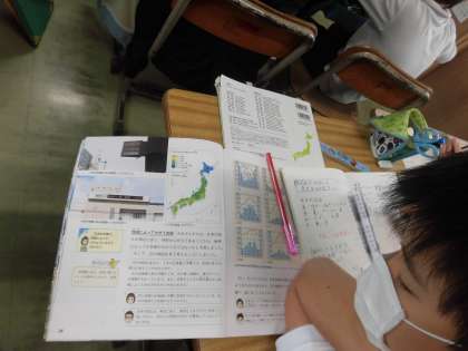 静かな空間で落ち着いて学んでいます。 日本各地の気温と降水量の変化を比べていました。