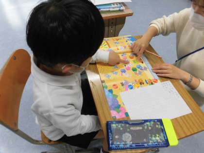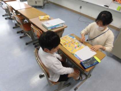 指で一緒に押さえながら確認したり、指し示して伝えたりしながら丁寧に学習を進めます。