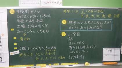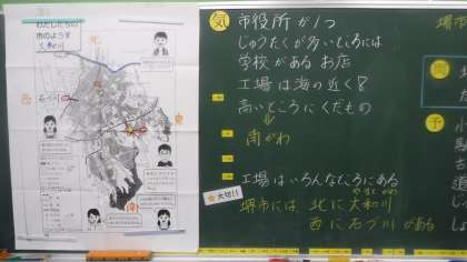 堺市にはどこに人が集まっているのかを考えています。 小学校・古墳の近くなどの考えもありました。