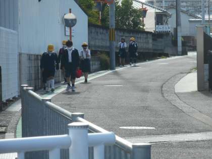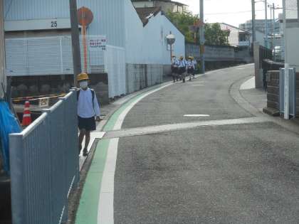 けさの登校のようすです。雨が上がってよい天気になりました。