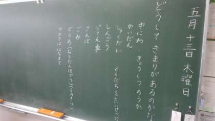 きまりはなぜあるのかを考えています。 コロナ禍ということもあり,マスクについても出ていました。