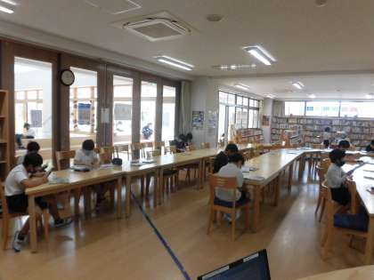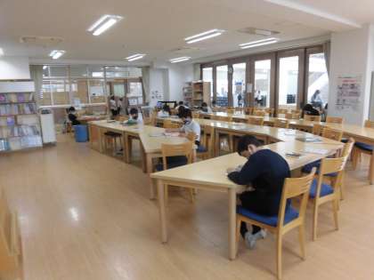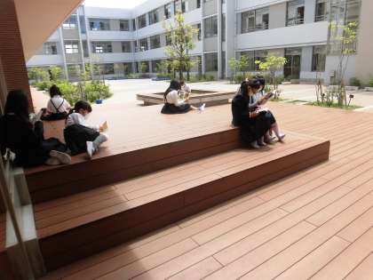 みんな真剣に本の世界に入っています。 中庭でも気持ちよく読んでいました。