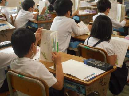 説明文の学習です。何を読み取るのかを決めて,4と5の段落を読んでいます。