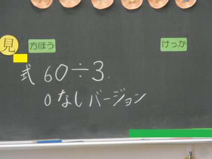 60の0をとって,6÷3 を使って計算できるのではないか という考えが出ました。