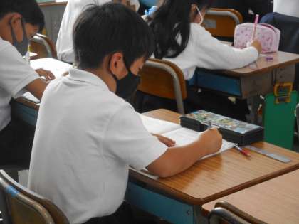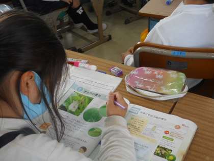 教科書を資料にして,調べたことをワークシートにまとめています。
