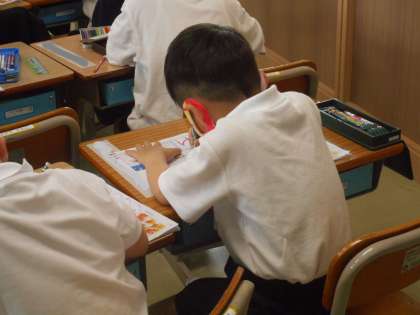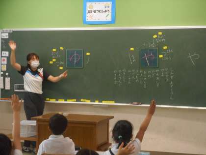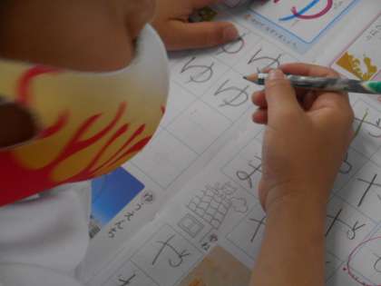 ひらがなの「や」「ゆ」の学習です。曲線が多い「ゆ」は少しむずかしい文字です。