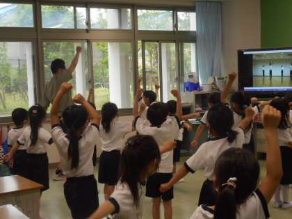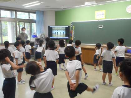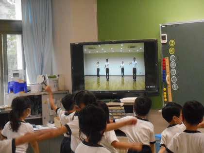 こちらも新堺っ子体操です。難しい部分を,動画を見ながら繰り返し練習しました。