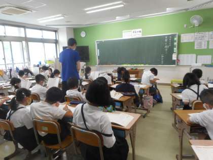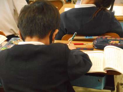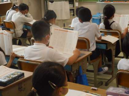 先生の範読を聞いています。集中した静かな時間が流れていました。