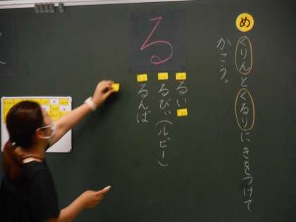 ひらがなの「る」の学習です。「る」の付く言葉を,一人ひとりが出し合っていました。