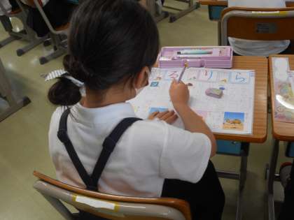 文字の書き方で気を付けるところを出し合って,練習しています。