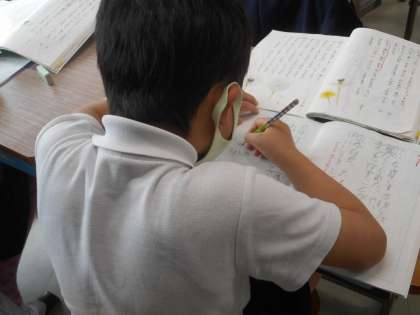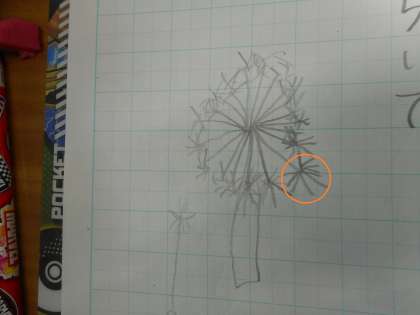 早速,この工夫をみんなでやってみました。「わた毛のらっかさんがいっぱいにひらいて」いるところをうまく描いています。