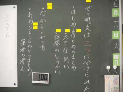 3年1組 国語 公開日 2021/05/18 更新日 2021/05/18 3年 説明文の学習です。読み取るためには,その方法を身につけておく必要があります。どんな説明文も,大きく3つに分けれれるという構造を持っていることを知りました。