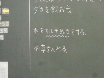飼育する上で大切なことを出し合っています。水の管理はまず大切ですね。