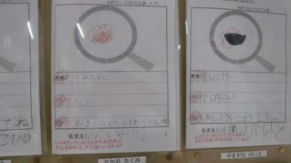 1年生 廊下掲示板 公開日 2021/05/19 更新日 2021/05/19 1年 アサガオの観察の学習の際に描いたワークが貼られています。 先生から,温かいメッセージや,次の課題を示唆する言葉が書かれています。