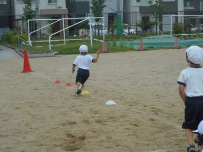 このグループも,体をうまく使って速く走っています。用具を上手く使うことで,たくみな動きを引き出すことができました。
