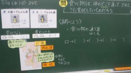 食べ物は体のどこを通るのかを考えています。