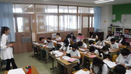段落の中心になる言葉について考えています。 長い文章を学習する前に,短い説明文で学習の見通しを立てています。