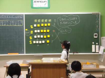 「いくつといくつ」の学習です。 5は、1と4・4と1と反対にしても5になることに気づいていました。