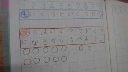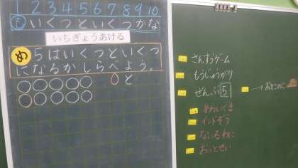 昨日学習した5の構成について確認をしています。今日は,ノートに書いています。