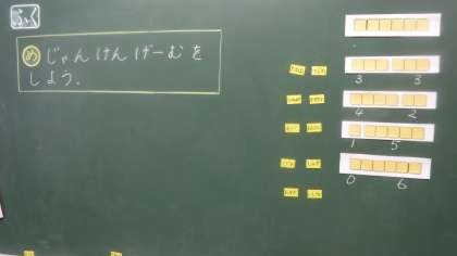 じゃんけんゲームを6回行い,勝った数と負けた数から6の構成について考えていました。