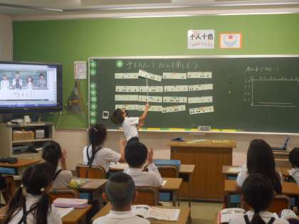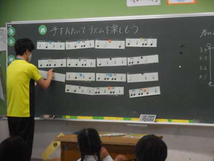 音符に示されたリズムを,手をたたいて感じ取ります。