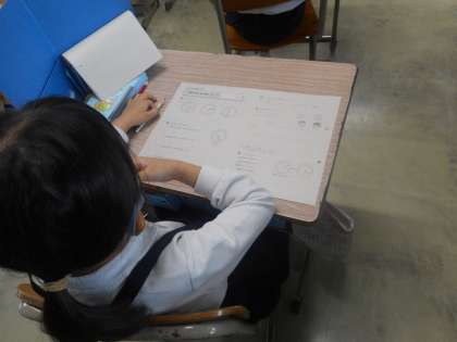 これまでに学習したことがどれだけ身についているのかを,プリントで確かめています。