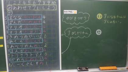 身近な言葉や名前を使いながら7について考えています。 今日はノートにたくさん書いていました。
