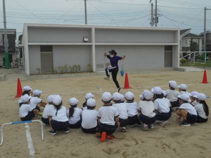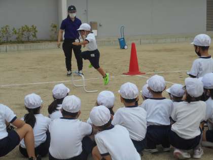 ハードルを低く越えるのと高く越えるのでは,どちらが速くなるかな という問いかけが先生からありました。