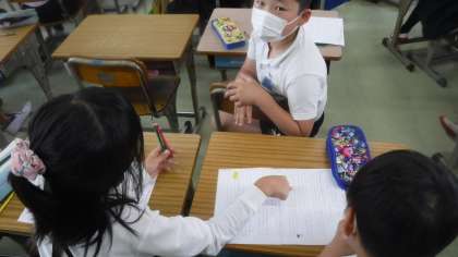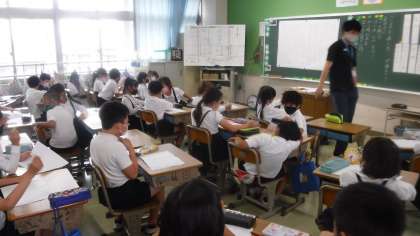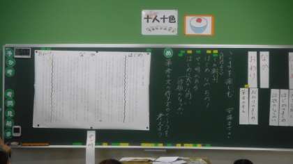 昨日の授業の様子です。前の時間の学習を想起させ,文の構成を学習しています。