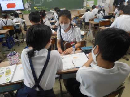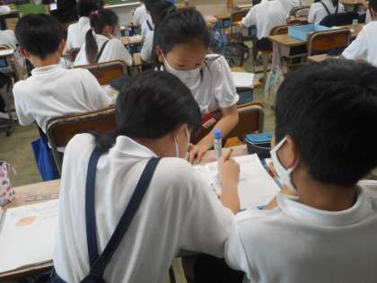 考えがまとまってきた時点で,近くの人たちと意見交換しています。