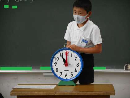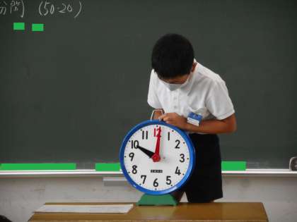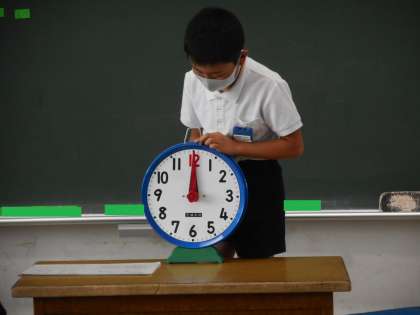 実際に時計を回しながら説明してくれました。午前11時の12時間後の時刻は,午後11時ですね。