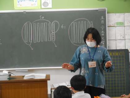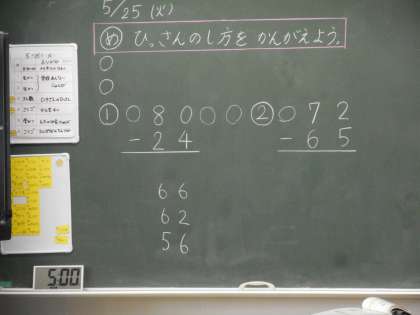 繰り上がりのあるひき算をひっ算で計算します。まず,ブロックをつかって,計算の手続きを目で見えるように経験しました。