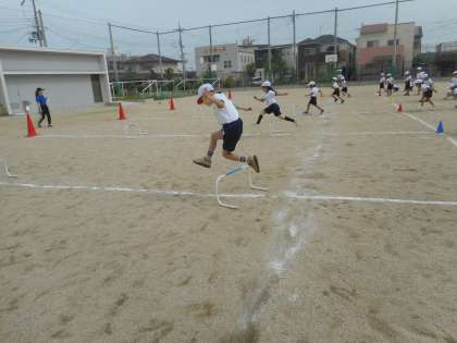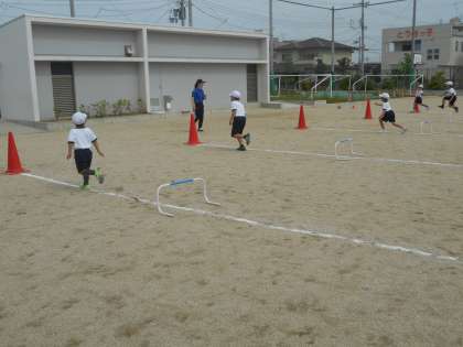 前の時間からハードルを1台増やして,2台のコースをスピードを落とさずに走るのがめあてです。