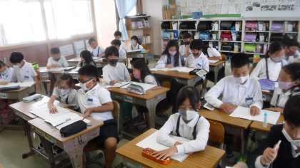 自分の考えをまずはお隣の子に伝えています。