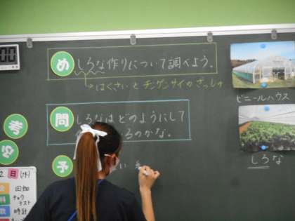 堺市の「しろな」づくりについて学習しています。収穫される時期について予想しています。
