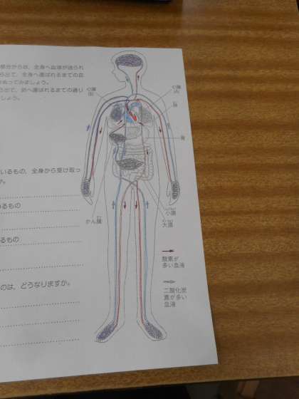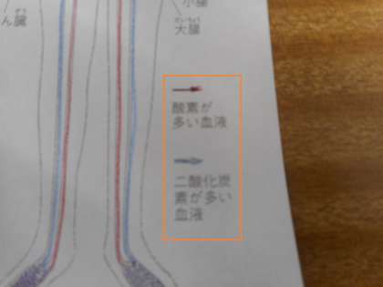 出ていく血液と戻ってくる血液の性質の違いも併せて,色分けしています。