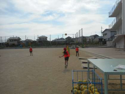 4年生のボールゲームの学習です。初めに,ゲームの中で大切になる正確なパスの練習です。