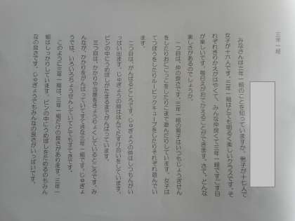 休み時間に持ってきてくれた3年1組の説明文の1つです。4人のグループで書きました。