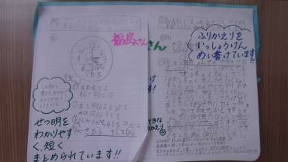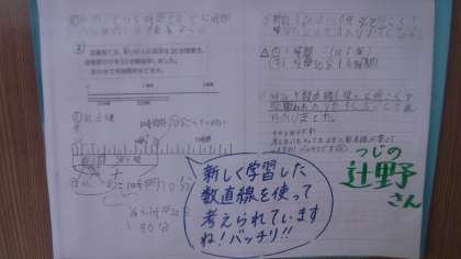 3組の木田先生は,算数のノートのふりかえりを掲示しています。