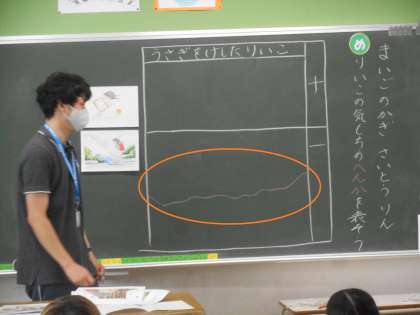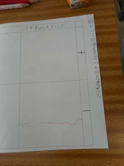 心情の変化を,うれしいとき上がる,悲しいときは下がる のように,線で表していきます。