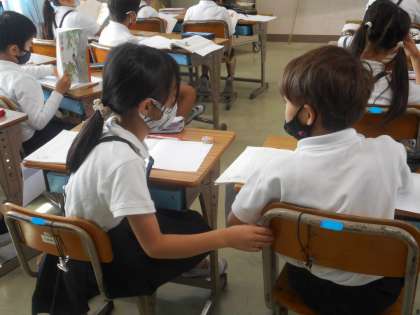 気づいたことがあると,自然にとなりどうしでの意見交換が始まっていました。