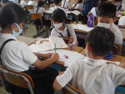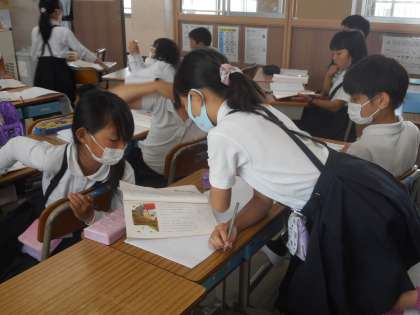 次の場面は,気持ちは上向きに変化していくようです。その根拠になる言葉を探しています。学習の進め方が少しずつ分かってきました。