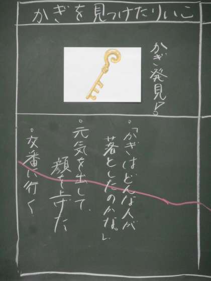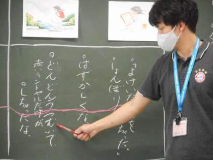 気持ちの変化と根拠になる言葉をつなげるために,先生といっしょに,みんなが見つけた言葉を声に出して確かめました。