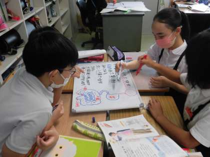 6年1組 理科 「体のつくりと働き」まとめ 公開日 2021/06/04 更新日 2021/06/04 6年 グループで「体のつくりと働き」のまとめをしていました。 ホワイトボードに上手にまとめています。