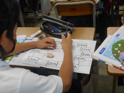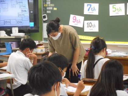 みんなで発音してみた後,ワークシートを使って,各自で発音しています。