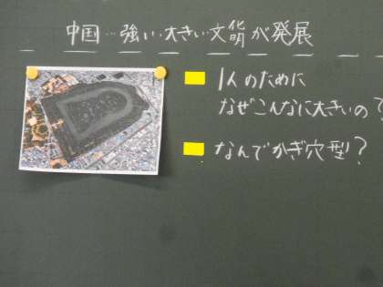 古墳が多く作られた時代の学習です。やはり,堺にある世界遺産の大仙古墳(仁徳天皇陵)を例にして考えます。いろんな疑問が出てきました。