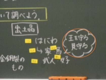 「はにわ」は,埋葬された人を守るという目的があるのではないか という考えが出されました。