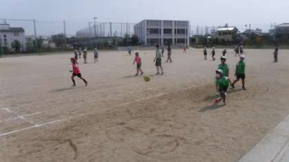 4年2組 体育 公開日 2021/06/08 更新日 2021/06/08 4年 ラインポートボールを学習しています。 今日は,前の時間のふりかえりより,「パスをするとすぐに走る」「集まらない」という2つについて解決しようとしています。