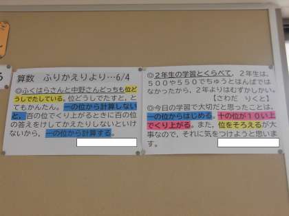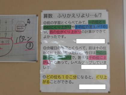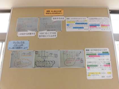 ふりかえりを活用し前時の学習を活かして学習を進めます。 廊下の掲示にも学習の足跡が残っていました。